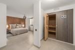 La llar està dissenyada amb un equilibri acurat entre elegància i funcionalitat. Disposa de cinc dormitoris amplis, tres dels quals amb bany privat, mentre que una sisena estança—actualment utilitzada com a despatx—aporta versatilitat com a dormitori de convidats, estudi creatiu o espai addicional per a la família. Un lavabo de cortesia i un altre bany complet garanteixen la comoditat tant dels residents com dels visitants. Els interiors estan decorats amb acabats de qualitat i mobiliari a mida que transmeten una atmosfera càlida i sofisticada. Una sauna privada reforça la sensació de relaxació i benestar dins la llar.