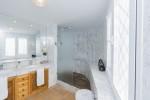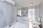 Das Haupthaus von 684 m2 ist auf 3 Ebenen gebaut und verfügt über zwei unabhängige Eingänge: den Haupteingang auf der Bodenebene und einen Nebeneingang, der direkt mit der oberen Ebene des Hauses verbindet. Das Erdgeschoss der Villa besteht aus einem Wohnzimmer, einem separaten Esszimmer, einer voll ausgestatteten Küche, 2 Schlafzimmern und 2 Badezimmern, von denen man en-suite ist. Auf der gleichen Ebene gibt es auch eine Maschine und eine Waschküche. Im Obergeschoss befinden sich die Master-Suite mit Sauna und Ankleideraum sowie 3 weitere Schlafzimmer-Suiten. Diese Ebene umfasst auch ein großes Wohnzimmer, einen Stauraum und eine Garage neben dem Eingang. Das Wohnzimmer und die Master-Suite öffnen sich auf eine herrliche Terrasse und eine Veranda mit malerischen Blick auf das Meer und die Küste.
