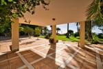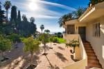 Luxusvilla mit andalusischem Charme auf einem riesigen Grundstück von 4341 m2 mit gepflegten reifen Gärten mit Obstbäumen, Schwimmbad, Grillplatz und einem Paddelplatz. Eingebettet auf einem Hügel mit Blick auf das Meer, genießt das Anwesen vollständige Privatsphäre inmitten der üppigen Natur und Atmosphäre der Gelassenheit.