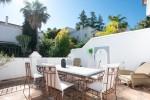 In einer charmanten Wohnanlage, nur knapp einen Kilometer von Marbellas goldenen Stränden entfernt, bietet dieses wunderschön modernisierte Reihenhaus mit drei Schlafzimmern eine seltene Verbindung aus andalusischem Charakter und zeitgenössischer Raffinesse. Umgeben von Kopfsteinpflasterwegen, weiß getünchten Fassaden und üppigen Gärten fängt das Haus den Geist eines traditionellen spanischen Dorfes ein und bietet gleichzeitig den Komfort modernen Wohnens.