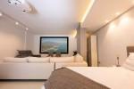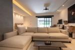 Das Anwesen erstreckt sich über drei durchdacht gestaltete Ebenen und vereint Stil mit Funktionalität. Das Erdgeschoss empfängt Sie mit einem lichtdurchfluteten, offenen Wohnbereich, der einen gemütlichen Salon, einen TV-Bereich und eine moderne Küche mit hochwertigen Geräten nahtlos miteinander verbindet. Von hier aus führen Glastüren auf eine großzügige private Terrasse – ideal für Mahlzeiten im Freien, Sonnenbaden oder einfach zum Entspannen unter dem mediterranen Himmel.