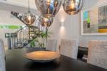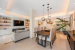 Das auf drei Ebenen und 212 m² verteilte Anwesen empfängt Sie mit einem hellen, offenen Wohnbereich, der eine maßgefertigte Küche mit hochwertigen Geräten, einen Weinkühlschrank und einen modernen Kamin umfasst. Großzügige Schiebetüren führen auf eine private Terrasse und in den Garten – der ideale Ort für Mahlzeiten im Freien und entspannte Zusammenkünfte.