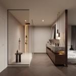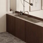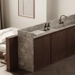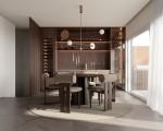 Natürliche Materialien wie Stein, dunkle Eichenholzarbeiten, Parkettböden und gerippte Fliesen in den Bädern schaffen eine anspruchsvolle und zugleich warme Atmosphäre im gesamten Penthouse. Die Immobilie ist durchdacht auf zwei Ebenen verteilt und bietet sowohl Stil als auch Funktionalität.