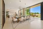 Die Villa ist für ein nahtloses Wohnen im Innen- und Außenbereich konzipiert. Die Hauptebene verfügt über einen großzügigen, offenen Wohn- und Essbereich, der direkt auf weitläufige Terrassen und den Pool führt. Bodentiefe Glastüren durchfluten das Innere mit natürlichem Licht und ermöglichen einen mühelosen Zugang zu den Außenbereichen für Mahlzeiten und Entspannung. Eine voll ausgestattete Designerküche, doppelte Raumhöhe und ein durchdachter Grundriss machen das Haus ideal für entspanntes Wohnen und stilvolle Unterhaltung.