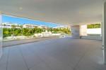 Eine großzügige Eingangshalle führt in einen anspruchsvollen Wohn- und Essbereich, der durch eine elegante offene Küche ergänzt wird. Bodentiefe Verglasungen erweitern den Innenraum auf eine großzügige, nach Westen ausgerichtete, überdachte Terrasse – ideal zum entspannten Verweilen und für Mahlzeiten im Freien, während die Sonne über dem Mittelmeer untergeht. Die Hauptsuite hat direkten Zugang zu dieser Terrasse und verstärkt so das nahtlose Innen-Außen-Erlebnis, das dieses Zuhause prägt.