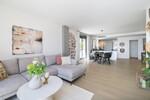 Die Innenraumgestaltung ist rund um ein lichtdurchflutetes, offenes Wohnkonzept angelegt, bei dem Küche, Ess- und Wohnbereich nahtlos ineinander übergehen. Dadurch entsteht ein einladender und funktionaler Raum, der durch reichlich Tageslicht und einem separaten Hauswirtschaftsraum für zusätzliche Praktikabilität ergänzt wird.