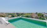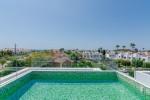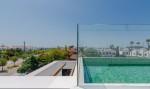 Prestigious private gated community of only 10 individual luxury villas designed by highly esteemed architects. Extremely private and highly exclusive, the complex is situated between the azure Mediterranean Sea and the San Pedro’s brand new pedestrian boulevard. It is the perfect solution for professionals and families seeking a statement home which is only a matter of minutes from Marbella and just 30 minutes’ drive to Málaga airport. Each magnificent villa will be surrounded by beautiful gardens with lush evergreen plants, trees and palms that create an individual sanctuary of peace, quiet and tranquillity. In the middle of this unique habitat you will be seduced by the dazzling swimming pool (with ecological salt watering cleansing) step in, cool down and relax. The complex combines a modernistic architecture and exceptional high quality finishes. The use of glass walls allow natural light to flood the living space and sliding patio doors seamlessly unite the interior with a stunning covered terrace, ideal for al-fresco living. Premium finishes such as high quality marble floors throughout and lacquered interior carpentry further enhance the sense of light and space and add to the sense of luxury. Master bedrooms boast deluxe en-suite marble bathrooms with double basins and walk-in wardrobes. All 4 bedrooms have access to a spectacular roof terrace and a private plunge pool. Each home is well appointed with a wide range of features designed to ensure comfort and convenience, including a large basement (suitable for a home cinema, family room, gym or an extra bedroom), air conditioning, underfloor heating (master bathroom), pre-installation for finger print controlled smart home technology, video entry phone, store rooms, a subterranean double garage and a private lift from the ground floor to the roof terrace. Already completed and ready to move in.