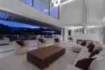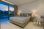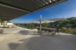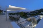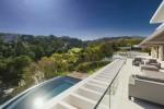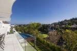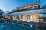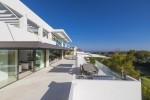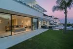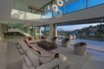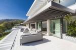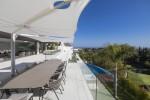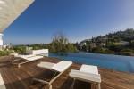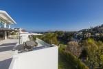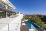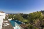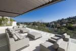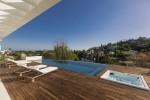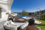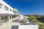 Modern 5-bedroom villa with the best panoramic sea and golf views situated in the privileged residential area of La Quinta, Benahavis, surrounded by golf courses and only a 5-minute drive to Puerto Banús, Marbella and the beaches. Exquisitely designed, furnished and decorated, it is an entertainment paradise for family and friends and open to the light and the views only southern Spain can offer. Distributed on three floors, the main level comprises: huge open-plan area comprising lounge, dining room, corner library and fully fitted kitchen with island, all opening onto a sunny terrace with BBQ area. The lower floor is dedicated to entertainment and relaxation including a play room and bar, cinema room, gym and sauna, plus the master suite with walk-in wardrobe and three en-suite guest bedrooms, all open onto the garden with infinity swimming pool and 5-people Jacuzzi. Features include: carport for three cars and extra en-suite bedroom on the street level, lift to all levels, fruit garden, intelligent home system, underfloor heating throughout, machinery room, utility room, three guest toilets and much more. Offered fully furnished and decorated.