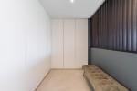 Distributed on four levels, it comprises, on the ground floor: contemporary design open-plan living/dining area with kitchen. The living area features floor-to-ceiling sliding windows, opening up to the terrace; en-suite bedroom.