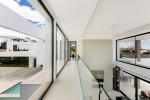 Brand-new designer villa built to the highest specifications and with an innovative architecture in a tranquil location, at the end of a cul-de-sac in a gated complex of luxury villas in La Alquería, Benahavís. An automated gate leads to a large courtyard with parking space for several cars. We arrive to the entrance via beautiful gardens with pools and water features, giving a distinctive Zen touch.This modern property shows a strong connection between the house and its surroundings, creating a smooth flow between the living room and the terraces with swimming pool. The result is fresh-looking and well-lit interiors and breathtaking, unobstructed views of the natural landscapes. From the entrance hall, we are immediately drawn to the spectacular open-plan living areas with the sensation of light and panoramic views.Distributed over two levels plus basement, it comprises, on the entrance level: fully fitted kitchen with central island, sit-up bar and a large dining room; guest bedroom with an en-suite bathroom; guest cloakroom. Upstairs: spectacular master suite on one side accessed by the gallery stairway and comprising a modern bathroom, dressing closet, a romantic fireplace and a private terrace to enjoy the magnificent views; further two en-suite bedrooms each having access to open terraces and naturally enjoying the light and the views. Lower level: multi-purpose area with a gym and bathroom, which is ideal as an entertainment area for the family. There is a lift to all floors. Offered fully furnished by a well-known Marbella designer. Close to supermarkets and international schools and surrounded by at least five golf courses within a few minutes’ drive.