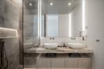 The master suite is a sanctuary unto itself. Oriented to capture uninterrupted sea views, it includes a bespoke walk-in wardrobe and a lavish en-suite bathroom designed to evoke a luxury spa—providing a serene escape from daily life.