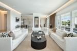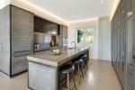 On this level, two generous en-suite bedrooms open directly onto the landscaped gardens, where natural stone accents and Mediterranean planting create a serene and inviting atmosphere. The open-plan kitchen combines Scandinavian design with high-performance appliances, offering a stylish yet functional environment ideal for everyday use and entertaining.