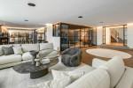 A wealth of leisure and wellness amenities elevate the residence to true resort-style living. A private gym, sauna, and steam room provide the perfect setting for daily wellbeing, while a state-of-the-art cinema room equipped with Bang and Olufsen technology creates an immersive environment for film nights and casual gatherings. A stylish lounge and bar area further enhance the villa’s appeal for entertaining. Outdoors, expansive terraces embrace panoramic views from sunrise to sunset thanks to the property’s ideal south-facing orientation. An integrated outdoor kitchen and barbecue area offer the perfect backdrop for open-air dining and social occasions.