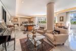 Set within one of Marbella’s most iconic and stately residential buildings, this exceptional corner apartment offers a rare combination of generous interior space and expansive wrap-around terraces—an ideal setting for refined city–beach living. An elegant entrance hall introduces the home, leading into a bright and sophisticated living–dining room where broad glazing fills the space with natural light and a classic fireplace adds warmth and character.