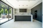 Outdoor spaces are a true highlight of the property. Designed as a natural extension of the interior, the exterior features a heated infinity swimming pool, a stylish chill-out area with fire pit, and a fully equipped summer kitchen beneath a bioclimatic pergola, allowing year-round enjoyment of Marbella’s climate.