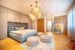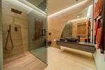 The upper floor is entirely dedicated to the impressive master suite, which includes a private sitting area, dressing room, en-suite bathroom and a private terrace with jacuzzi and beautiful sea views, creating a peaceful and private retreat within the home.