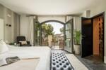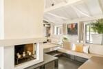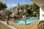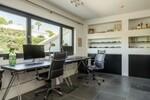 Renovated in 2006, the villa features a bright and functional layout designed for comfortable living. The open-plan kitchen, fitted with two central islands, connects directly to the terraces and garden and is complemented by a separate utility room. The spacious living and dining areas are defined by warmth and character, featuring two fireplaces, including a striking double-sided design. Large Roman Clavero windows and doors open onto the main terrace, enhancing the indoor-outdoor flow, while high vaulted ceilings with wooden beams add a sense of charm and homeliness.