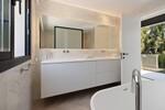 The upper level is accessed via an impressive triple-height staircase and hosts three additional en-suite bedrooms. The principal suite stands out with its generous proportions, featuring a luxurious bathroom with both bathtub and walk-in shower, as well as a large wraparound terrace offering stunning views of La Concha. Three of the four bedrooms benefit from these iconic mountain views, adding to the villa’s overall appeal.
