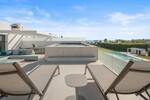 At the top of the villa, the rooftop terrace defines the lifestyle offering. A private pool runs along the edge of the solarium, accompanied by generous areas for dining, lounging, and entertaining beneath a pergola, all set against open views across the Golden Mile and the Mediterranean.