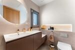 The home features 138 m² of interior living space, complemented by 68 m² of terraces and an impressive 128 m² private solarium. The interiors are designed with a contemporary Scandinavian influence, incorporating natural materials such as stone and oak wood to create a bright, balanced, and functional living environment.