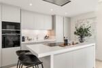 The layout is centred around an open-plan living, dining, and kitchen area, designed for seamless flow and everyday comfort. Large windows maximise natural light while framing the surrounding landscape. The fully fitted kitchen is equipped with Siemens appliances, combining clean design with practicality, making it equally suited for daily living and entertaining.