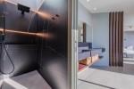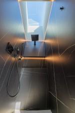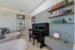 La zona de descanso, situada en la planta superior, alberga tres amplios dormitorios. La suite principal dispone de vestidor y baño en suite, mientras que los otros dos dormitorios comparten un baño completo. Todas las estancias cuentan con acceso directo a generosas terrazas, ideales para disfrutar de las vistas y de los atardeceres. En la planta cubierta, un espectacular solárium corona la vivienda con vistas panorámicas al entorno y al mar. El sótano ofrece un espacio polivalente con múltiples posibilidades, como gimnasio, sala de cine o almacenamiento, además de una zona destinada a las instalaciones.
