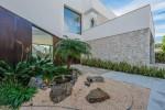 La vivienda se organiza en cuatro niveles perfectamente integrados, combinando espacios amplios y luminosos con una conexión constante con el entorno. En la planta principal se encuentra un elegante espacio diáfano que integra salón, comedor y cocina de diseño con isla central, acompañado de grandes ventanales que amplían visualmente la vivienda. En este nivel también se ubican el recibidor, un aseo de cortesía y un garaje cerrado para dos vehículos. La villa dispone además de piscina privada y jardín con riego automático. La zona de la piscina, rodeada por un amplio porche cubierto y un solárium pavimentado, crea el escenario perfecto para el descanso y las reuniones al aire libre.