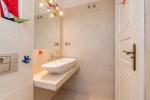 En la planta superior, la suite principal ofrece un lujoso cuarto de baño y una terraza privada con impresionantes vistas al mar.