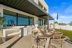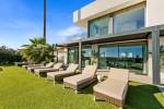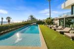 Moderna villa ubicada en primera línea de playa en El Saladillo, en la Nueva Milla de Oro, Estepona. Esta lujosa villa con vistas panorámicas al mar consta de 5 dormitorios con baños en suite (dos en la planta baja y tres arriba), un gran salón/comedor de planta abierta con chimenea y una impecable cocina moderna totalmente equipada. Acceso al amplio jardín con piscina. El dormitorio principal está en la planta de arriba y cuenta con una terraza privada y vestidor. Nivel inferior: spa de lujo con piscina cubierta climatizada y sauna. Terraza en la azotea con zona de descanso y jacuzzi con tarima de madera. Todas las estancias ofrecen preciosas vistas al mar y luz natural a través de sus grandes ventanas del suelo al techo que integran el exterior con el interior de la vivienda. Extras: zona de ocio, lavadero, trastero y un garaje para 2 coches con plataforma giratoria. Construida con materiales de primera calidad en toda la casa. Una propiedad increíble y cómoda ubicada en una zona privilegiada y cotizada a tan solo 10 minutos en coche de Puerto Banús.