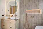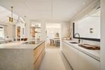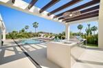 En el interior, un diseño de concepto abierto y aireado le da la bienvenida con techos abovedados, una paleta de tonos naturales y acabados sofisticados. La elegante sala de estar fluye sin esfuerzo hacia una cocina y comedor de última generación, todo realzado por electrodomésticos de alta gama y mobiliario a medida. Las amplias puertas de cristal del suelo al techo inundan el interior de luz natural y conducen a una espaciosa terraza que cuenta con un salón hundido, una cocina exterior y una espectacular piscina infinita que parece flotar sobre el paisaje.