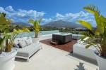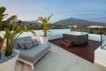 La arquitectura es elegante y depurada, realzada por materiales de alta gama que elevan tanto la estética como la calidad de la vivienda. Los ventanales de suelo a techo y las amplias puertas correderas de cristal inundan los interiores de luz y crean una conexión fluida entre los espacios interiores y exteriores. Las generosas terrazas invitan a disfrutar durante todo el año de los 320 días de sol de Marbella, mientras que el exclusivo solárium en la azotea—equipado con jacuzzi—ofrece un refugio de lujo con vistas panorámicas.