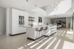 La planta principal le da la bienvenida con un amplio vestíbulo de entrada que conduce a una luminosa sala de estar con techos altos y una acogedora chimenea. Un comedor independiente, también con chimenea, se sitúa junto a la cocina de concepto abierto, totalmente equipada con elegantes muebles Blum y electrodomésticos de alta gama de Miele y Bora. En este nivel también se encuentra un aseo de invitados, lavadero y dos dormitorios de invitados con baños en suite. Desde las principales zonas de estar, grandes puertas de cristal se abren directamente a las amplias terrazas, el jardín cuidadosamente ajardinado y una piscina privada de 56 m², perfecta para disfrutar del sol o recibir invitados.