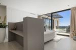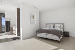 En la planta superior, la suite principal es un verdadero santuario, con vestidor y una sala contigua que puede utilizarse como despacho, gimnasio o dormitorio adicional. Dos dormitorios de invitados adicionales con baños en suite se encuentran en este nivel, y todas las habitaciones de la planta superior ofrecen acceso directo a las terrazas y vistas panorámicas ininterrumpidas. También se incluye un garaje privado con espacio para un coche.