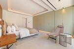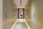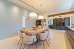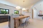 En el interior, las líneas limpias, el minimalismo suave y los acabados de alta gama definen los espacios habitables. Una cocina totalmente equipada con isla central articula la zona principal, fluyendo de manera natural hacia un generoso comedor y un acogedor salón con chimenea y mobiliario a medida. La luz natural inunda los ambientes a través de grandes ventanales, realzando la sensación de amplitud y luminosidad de la villa.