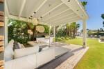 El exterior es igualmente impresionante. Rodeada de jardines paisajísticos, la zona exterior de la villa ha sido diseñada tanto para el relax como para el entretenimiento. En su corazón se encuentra una gran piscina privada enmarcada por una elegante tarima de madera, tumbonas y sombrillas. Varias zonas chill-out se distribuyen estratégicamente, incluyendo un elegante salón bajo pérgola y una cocina exterior cubierta con barbacoa integrada, ideal para disfrutar del sol de Marbella y de comidas al aire libre.