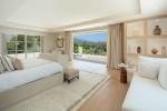 Los interiores se definen por una paleta suave y acogedora que realza la sensación de calma y refinamiento. La residencia principal consta de cinco amplios dormitorios, incluyendo una lujosa suite principal con vestidor, cada uno diseñado con individualidad pero manteniendo un flujo cohesivo y armonioso. Una casa de invitados independiente de un dormitorio proporciona privacidad adicional, ideal para visitantes o personal.