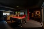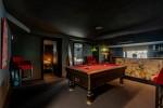 El sótano está dedicado al ocio, con una sala de juegos, elegante bar y salón, sala de cine y bodega. Aquí también se ubican dos dormitorios de invitados que comparten un baño, además de amplios espacios de almacenamiento, garaje y sala de máquinas.