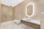 La villa cuenta con seis dormitorios en suite y un aseo de cortesía, cada espacio cuidadosamente diseñado para transmitir sofisticación y confort. Las zonas de estar y comedor de planta abierta son ideales tanto para el entretenimiento como para la vida familiar relajada, conectadas perfectamente con la terraza a través de puertas panorámicas de cristal. La cocina de última generación, equipada con electrodomésticos de alta gama y acabados elegantes, funciona como centro culinario y como declaración de diseño moderno.