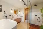 El diseño interior irradia sofisticación y calidez, con paletas neutras, texturas naturales y mobiliario a medida que realzan la gracia arquitectónica de la villa. Cada detalle —desde la iluminación artesanal y estanterías personalizadas hasta piezas de decoración seleccionadas— contribuye a una atmósfera de refinado confort. Grandes ventanales panorámicos enmarcan vistas cautivadoras, inundando la vivienda de luz natural y una sensación de amplitud.