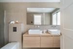 En el interior, la planta baja se despliega en un elegante espacio diáfano de casi 80 m², que combina una cocina de diseño, un amplio salón y un acogedor vestíbulo de entrada con aseo de cortesía. Los interiores reflejan la esencia del estilo escandinavo: líneas limpias, luz natural y materiales cuidadosamente seleccionados que transmiten calidez y sencillez. Bajo la escalera, una vinoteca a medida aporta un toque de distinción. Cada estancia dispone de un sistema Airzone de control individual para el confort térmico óptimo, mientras que todos los baños cuentan con calefacción por suelo radiante y elegantes revestimientos de suelo a techo en tonos beige relajantes.