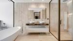 Cada dormitorio está diseñado como un santuario de tranquilidad, con ventanales de suelo a techo, armarios a medida y baños en suite bellamente equipados, con lujosos acabados en piedra, lavabos dobles y duchas tipo lluvia que evocan una atmósfera de spa.