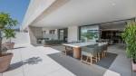 El interior presenta una sofisticada paleta de tonos naturales, líneas limpias y acabados de primera calidad que irradian lujo sin esfuerzo. La zona de estar y comedor de planta abierta fluye perfectamente hacia una gran terraza orientada al suroeste, con vistas a exuberantes jardines paisajísticos y elegantes áreas de piscina. Tanto desde la terraza como desde la azotea, las vistas panorámicas al mar crean el escenario ideal para atardeceres inolvidables y reuniones al aire libre.