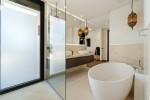 El diseño fusiona a la perfección la arquitectura contemporánea con sutiles influencias andaluzas y moriscas, reflejadas cuidadosamente en la iluminación a medida, textiles seleccionados y mobiliario personalizado. Estos elementos se integran de manera coherente en los interiores y espacios exteriores, creando una atmósfera sofisticada pero cálida, enriquecida por el carácter cultural.