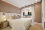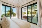 La vivienda ofrece cinco dormitorios de generosas dimensiones, todos acabados con un alto nivel de calidad, tonos neutros, carpintería personalizada e iluminación cuidadosamente planificada. La suite principal ocupa una posición privilegiada en la planta superior, con acceso directo a una terraza privada y espectaculares vistas al mar. Este nivel también se abre a amplios espacios exteriores que capturan plenamente el paisaje circundante.