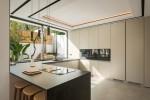 La cocina y el comedor continúan con esta estética refinada, ofreciendo un diseño de planta abierta con electrodomésticos de alta gama, generosas superficies de trabajo y abundante espacio de almacenamiento. Diseñados para la funcionalidad y el estilo, estos espacios fluyen de manera natural hacia la sala de estar y las terrazas exteriores, permitiendo una interacción sin esfuerzo entre el interior y el exterior. Las ventanas panorámicas enmarcan los jardines y las vistas, integrando el paisaje como parte esencial del hogar.