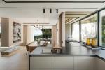 Los interiores han sido diseñados meticulosamente para crear una atmósfera cohesionada y elegante, definida por tonos naturales, detalles a medida y materiales de primera calidad en toda la vivienda. La zona principal de estar es amplia y luminosa, realzada por grandes paneles de vidrio correderos que se abren completamente a las terrazas. La iluminación integrada y las texturas refinadas crean un espacio sofisticado y acogedor, ideal tanto para la vida diaria como para el entretenimiento.