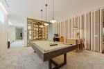 La planta inferior está diseñada para el ocio y la funcionalidad, ofreciendo una sala de cine, gimnasio, lavandería y un garaje para varios vehículos, complementado con trasteros y salas técnicas. Este nivel aporta profundidad y versatilidad a la vivienda, apoyando un estilo de vida relajado pero funcional.
