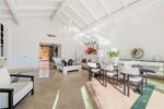 La propiedad está cuidadosamente distribuida en una única planta principal, separando de forma natural las zonas de estar de los dormitorios privados. El salón-comedor principal es luminoso y de proporciones generosas, con techos altos, suelos de mármol y puertas correderas de altura completa que se abren directamente a las terrazas y al jardín. La distribución es tanto práctica como refinada, diseñada para ofrecer confort en la vida cotidiana así como en estancias estacionales.