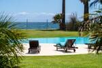 En el exterior, los jardines maduros rodean una amplia piscina y se extienden directamente hasta la playa, ofreciendo un entorno privado y sereno con acceso inmediato al mar.