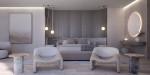 À l'intérieur, les pièces ne sont pas séparées mais s'écoulent organiquement les unes dans les autres, ce qui améliore le sens de l'espace et de la connexion. Le vaste salon, couronné de plafonds envolés et encadré par des cours intérieures, s'étend dans la cuisine et s'ouvre sans effort sur une piscine à débordement avec vue panoramique. La lumière danse à travers les intérieurs, passant doucement de l'aube au crépuscule.
